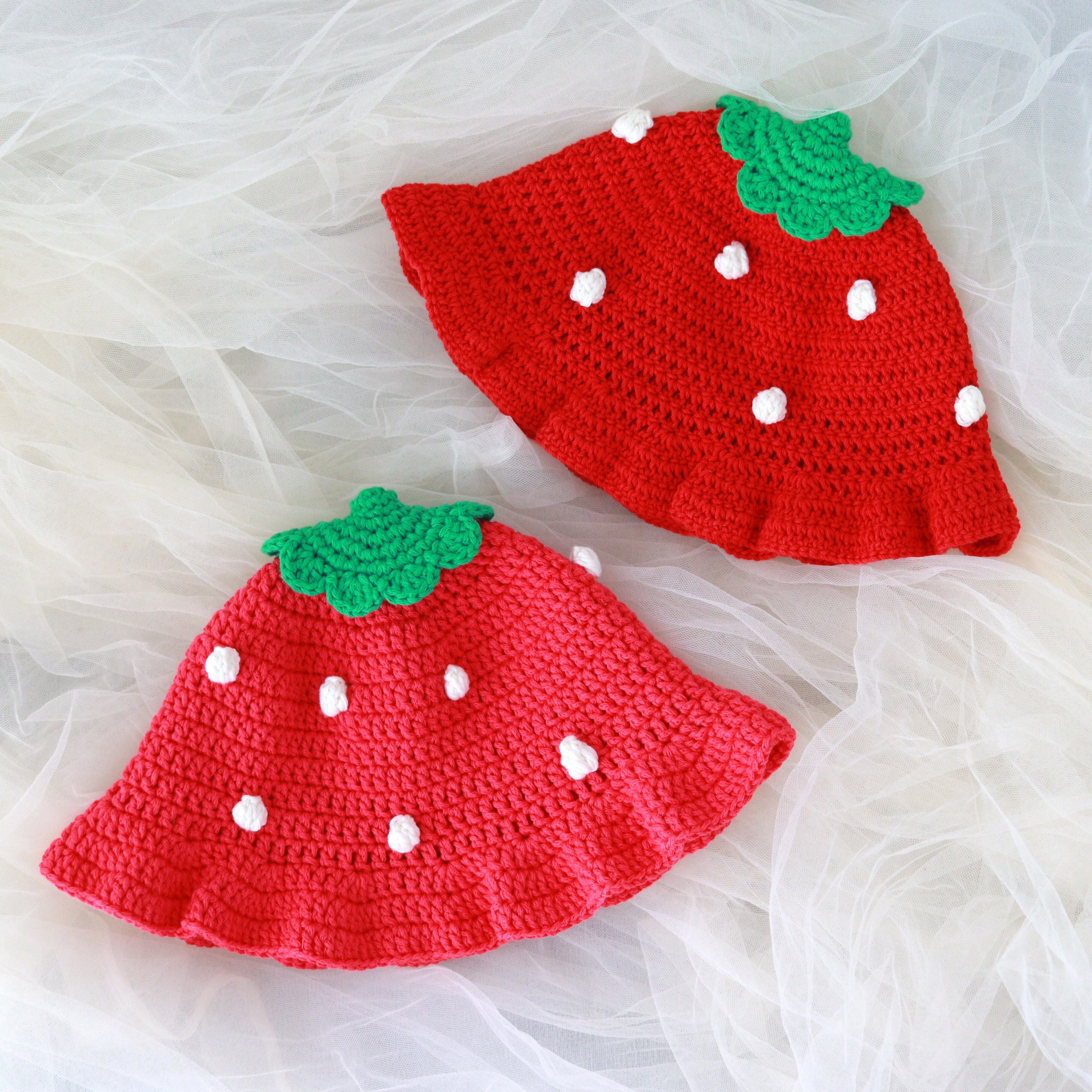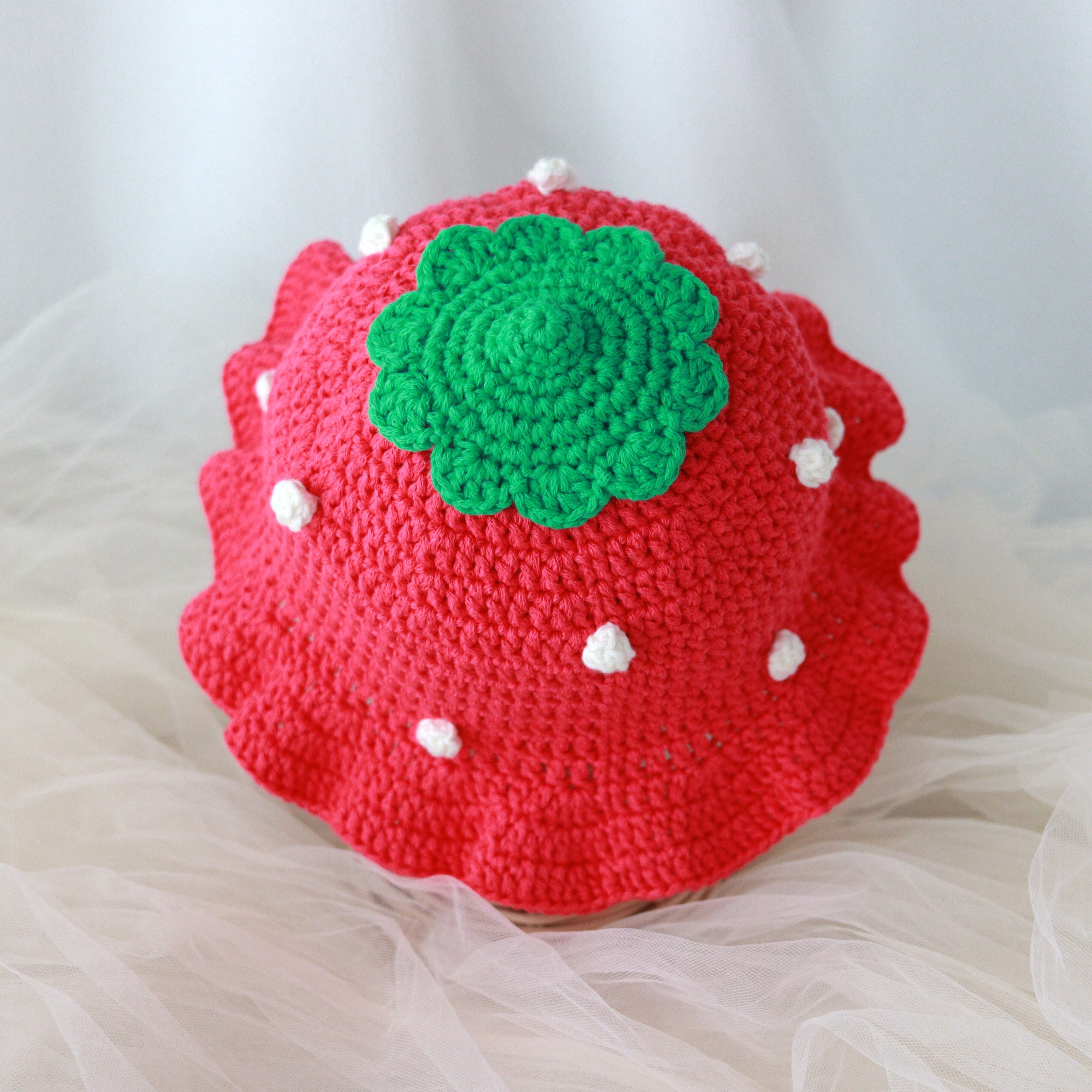 いちご帽子に「フリル」が付いた可愛い帽子です。